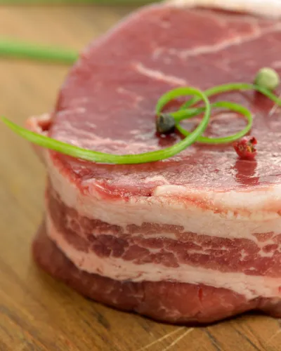 Beef wrapped in bacon is a delicious and indulgent dish that combines the rich flavors of beef and the smoky, salty goodness of bacon. It's a popular choice for a hearty and satisfying meal or appetizer.