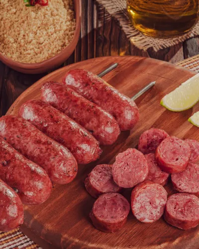 Linguica (or "linguiça") sausage is a flavorful and spicy Portuguese sausage that is popular not only in Portugal but also in various Portuguese-speaking regions, including Brazil and parts of the United States. Linguica is known for its distinctive taste, which is often a result of the combination of paprika and other seasonings.